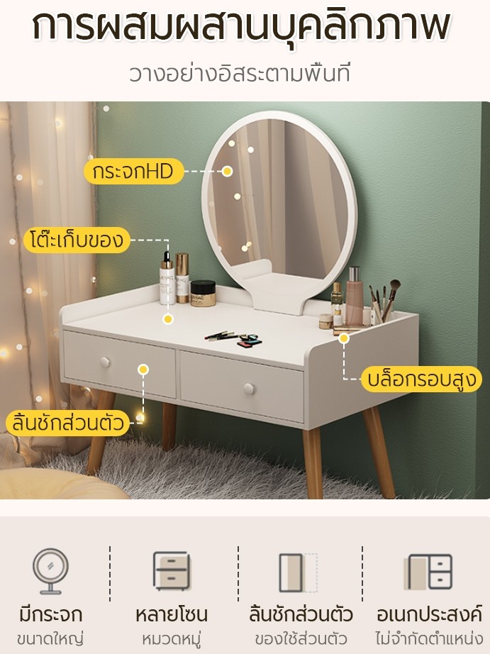 โต๊ะเครื่องแป้งสไตล์มินิมอล เหมาะสำหรับๆสาวๆนักแต่งหน้าโดยเฉพาะ ตัวสินค้าทำจากไม้เนื้อเเข็ง การออกแบบทันสมัยเหมาะสำหรับตกแต่งห้อง ใช้งานได้จิง ขนาดกระทัดรัด สำหรับนั่งพื้นเก๋ๆ