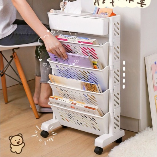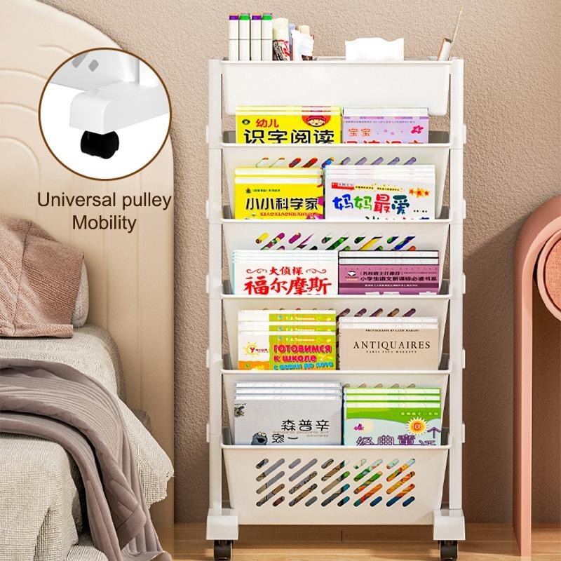 【ดีไซน์หลายชั้น จัดเก็บได้เป็นระเบียบ】ชั้นวางหนังสือเคลื่อนที่ออกแบบให้มีหลายชั้น เพื่อการจัดระเบียบหนังสือเรียน เอกสาร หรือของใช้ต่าง ๆ ได้อย่างเป็นระบบ เหมาะสำหรับพื้นที่จำกัด เพิ่มความเป็นระเบียบให้พื้นที่ของคุณ