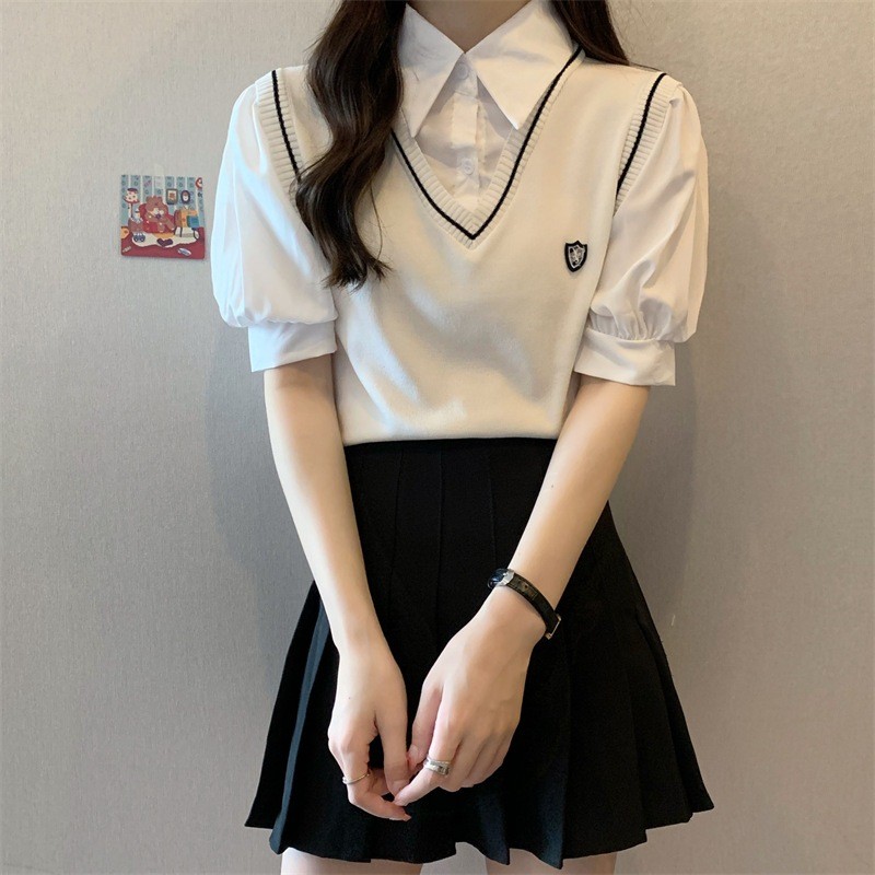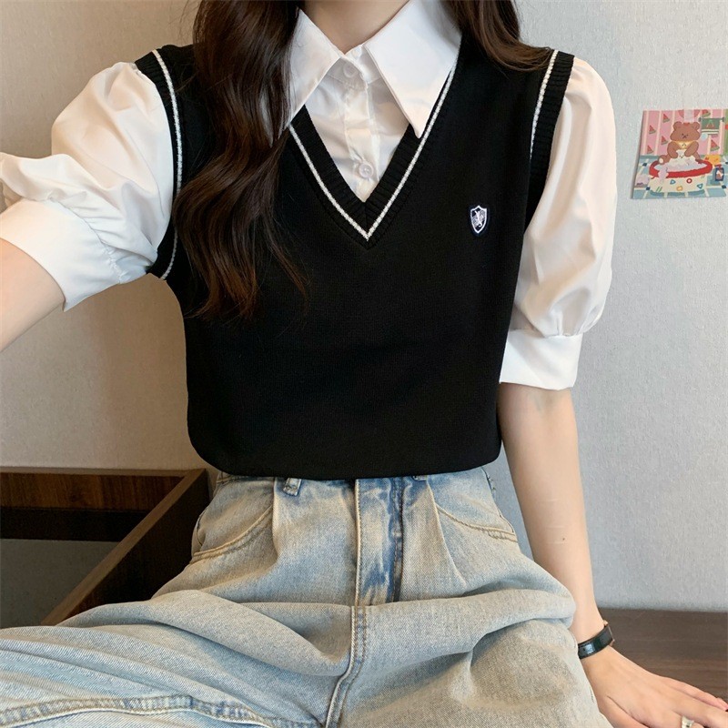 เสื้อยืดหญิง ผ้าไหมพรม (เฉพาะเสื้อกั๊ก) คอวี แขนกุด เสื้อครอป ดีไซน์แฟชั่นสไตล์เกาหลี ( 4545 )
