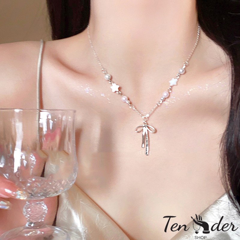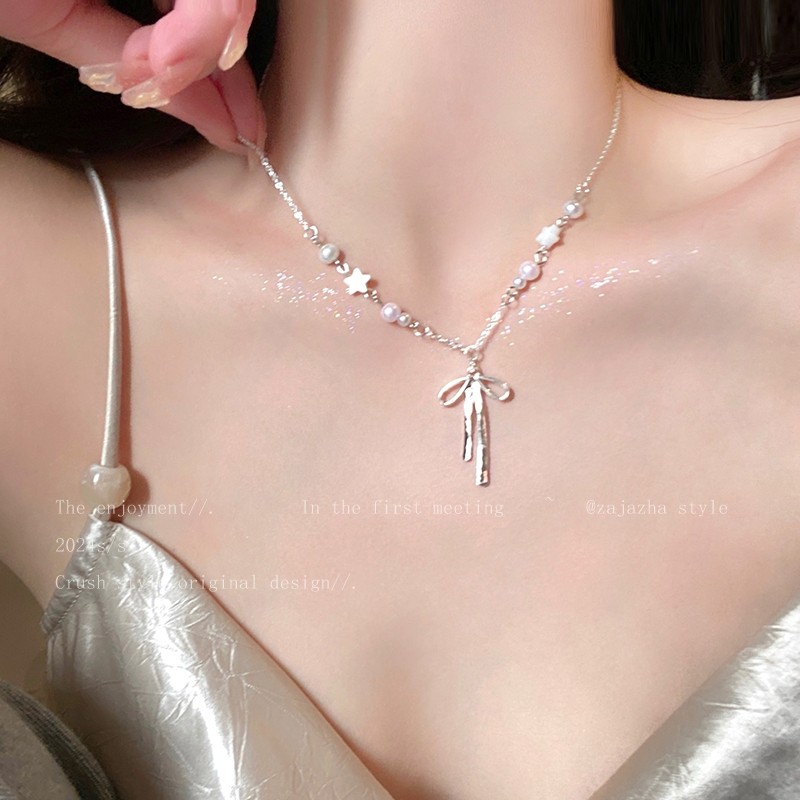 สร้อยคอ จี้ประดับโบว์ น่ารักหวาน สไตล์หรูหราแสง นักเรียนสำหรับผู้หญิง เครื่องประดับแฟชั่น ปรับขนาดได้