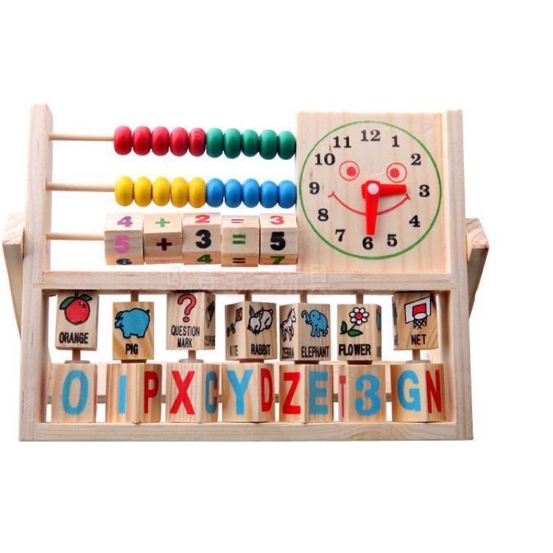 ชุดเรียนรู้คำศัพท์ไม้ ลูกคิด บวกเลข นาฬิกา ของเล่นเสริมพัฒนาการ