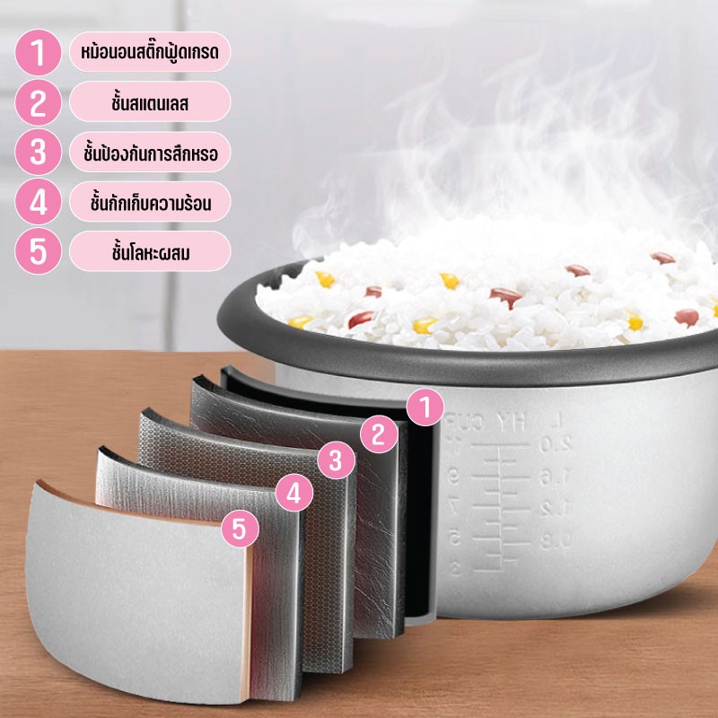 - มีที่นึ่งสแตนเลส สำหรับนึ่งหรืออุ่นอาหาร