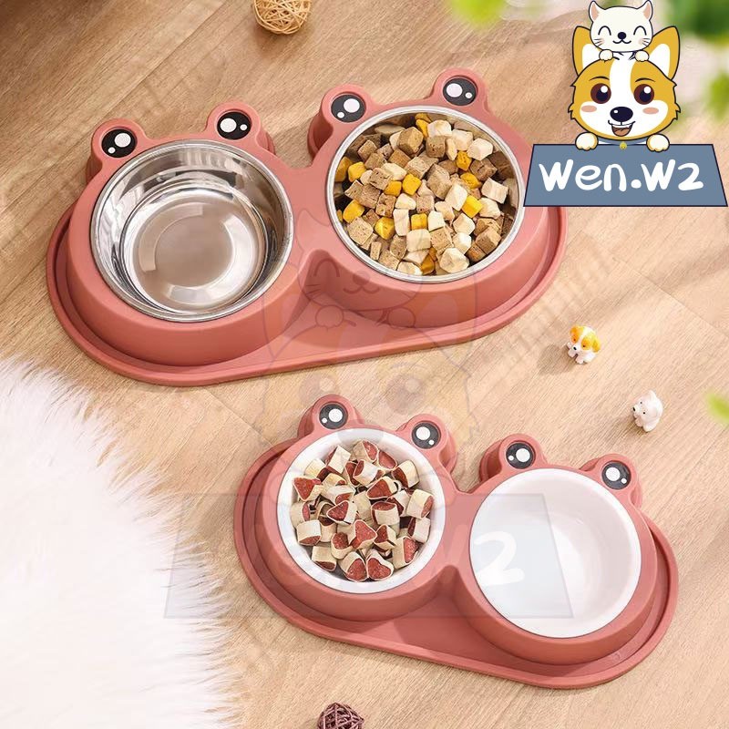 ชามอาหารสัตว์เลี้ยง 2ช่อง ชามใส่อาหารสัตว์ ชามสุนัข แมว