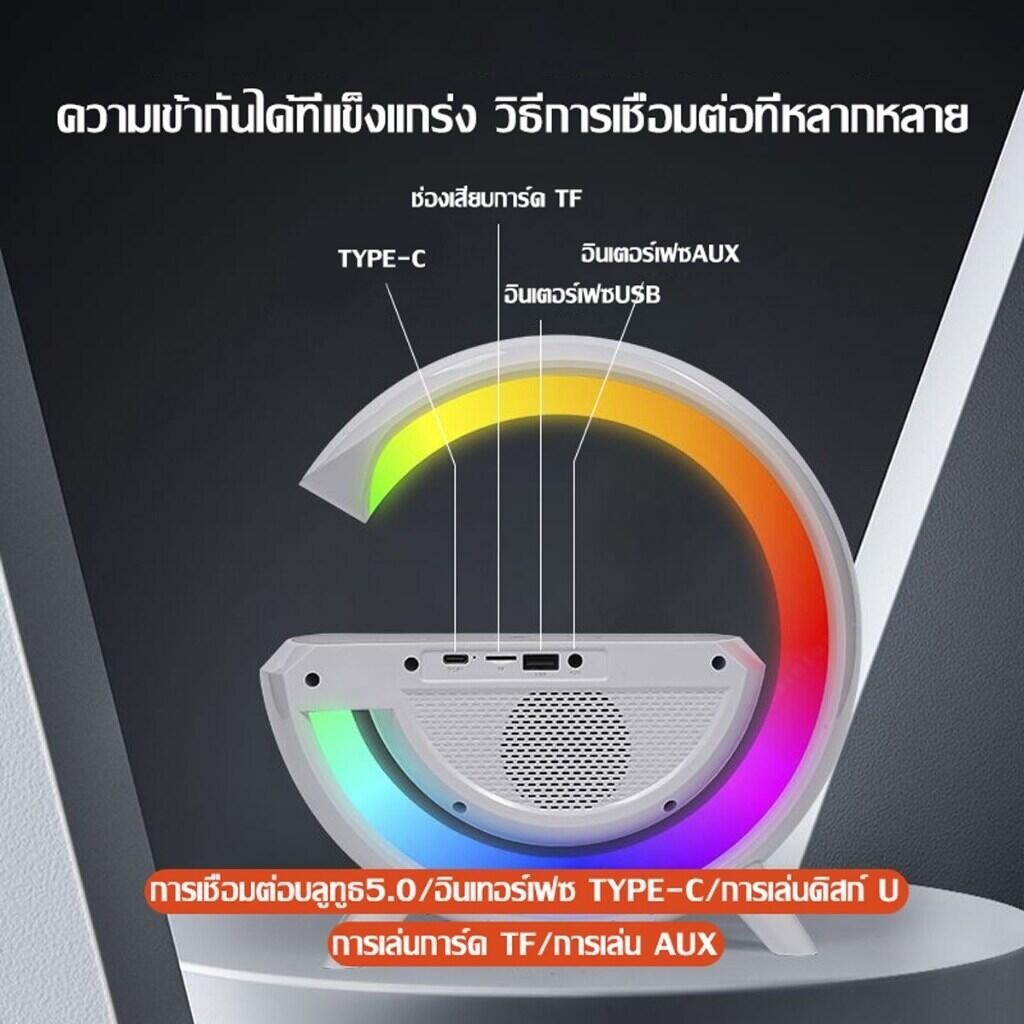 คำอธิบายฟังก์ชั่น: ชาร์จไร้สาย 15W, โคมไฟนอน, โคมไฟปลุกพระอาทิตย์ขึ้น, โคมไฟบรรยากาศ, โคมไฟข้างเตียง, เอฟเฟกต์แสงพราว, เสียงบลูทู ธ, นาฬิกา, นาฬิกาปลุก