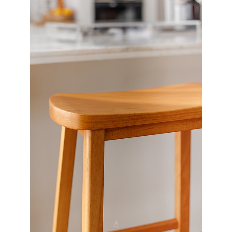 ออกแบบมาให้พื้นที่นั่งมีความโค้งมล พร้อมโครงสร้างเก้าอี้ที่แข็งแรง ทุกชิ้นใช้ไม้ยางพาราเกรดพรีเมี่ยมส่งออก พร้อมขัดเคลือบพิเศษ ช่วยปกป้องเนื้อไม้จากปลวก, มอดไม้, น้ำ และรอยขีดขวนเล็กน้อยได้เป็นอย่างดี ขาเก้าอี้ใช้ไม้ยางพาราทั้งท่อน