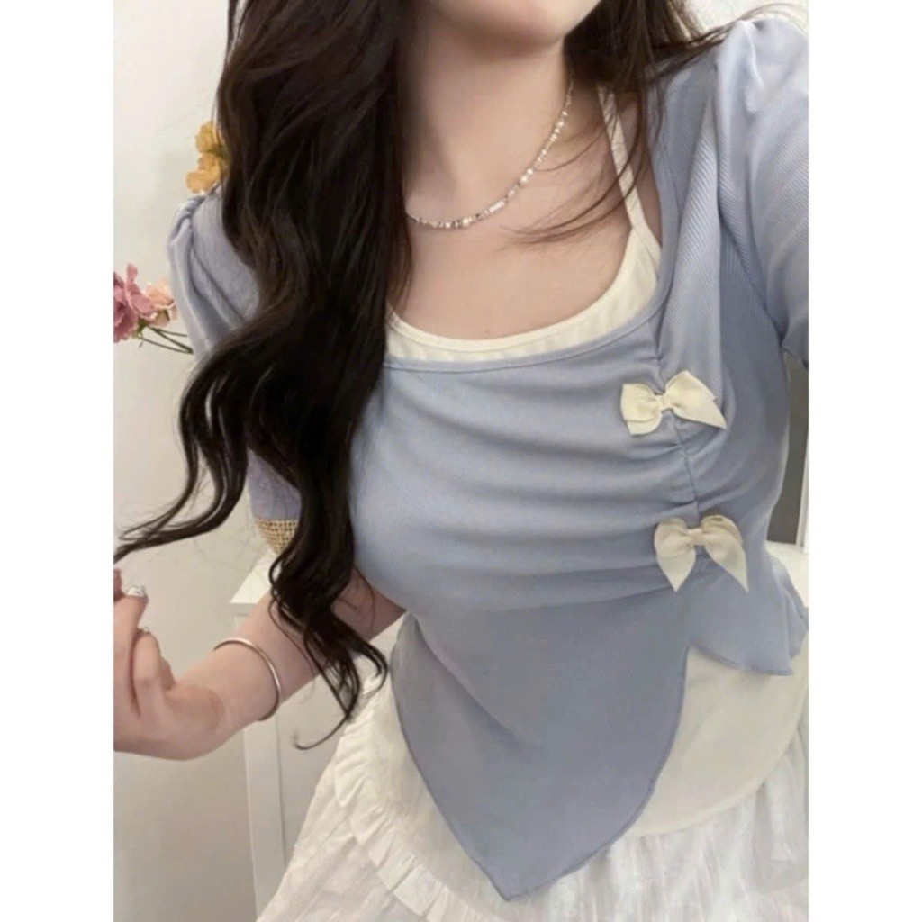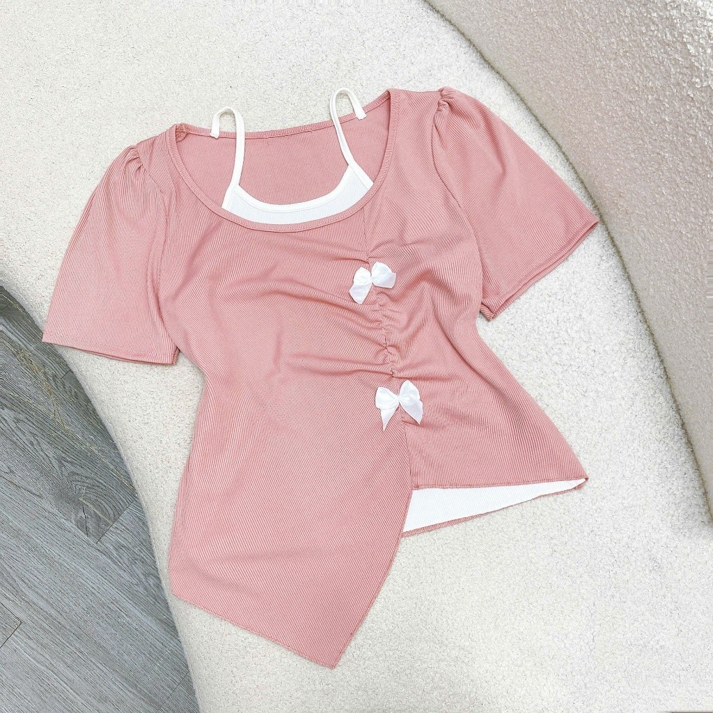 เสื้อยืดแขนสั้นทรงบิ๊กไซส์พร้อมเอี๊ยมปลายแหลมผ้ายืด A278