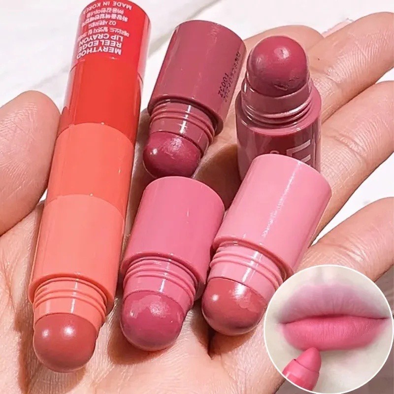 4 เฉดสีในแท่งเดียว เนื้อแมตต์กำมะหยี่ เบลนด์ง่าย เนียนละมุน เม็ดสีแน่นและชัด กลบสีปากสนิท ไม่หนักปาก กันน้ำ สีติดทนนานทั้งวัน