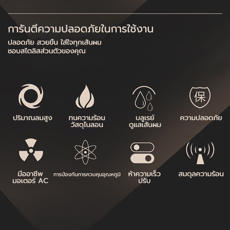 ?️ ก่อนใช้ผลิตภัณฑ์นี้ โปรดตรวจสอบว่าเครื่องเป่าผมปิดอยู่ (ปุ่มแรก "0" ปิดอยู่ และปุ่ม "1" เปิดอยู่)