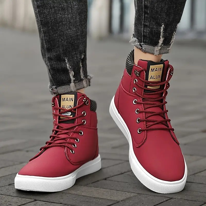 Hashtags: #รองเท้าผ้าใบข้อสูง #สไตล์เกาหลี #MAINALUN #รองเท้าผู้ชาย #รองเท้าผู้หญิง #รองเท้าเรโทร #รองเท้าสบายๆ #รองเท้าฤดูกาล #รองเท้าสีเหลือง #รองเท้าสีแดง #รองเท้าสีดำ
