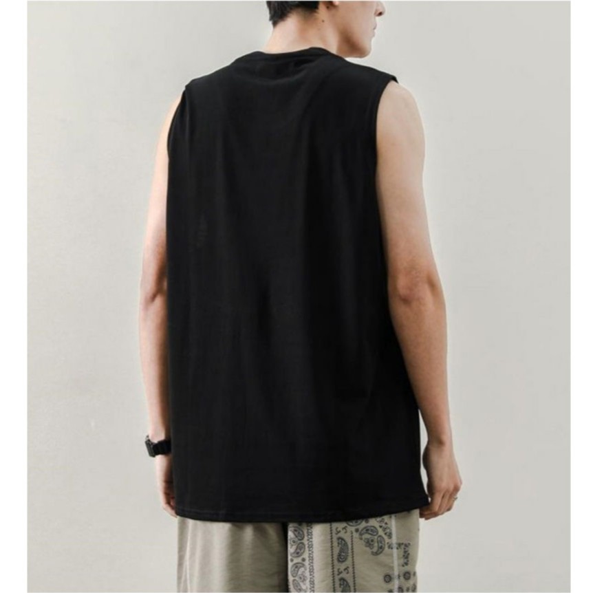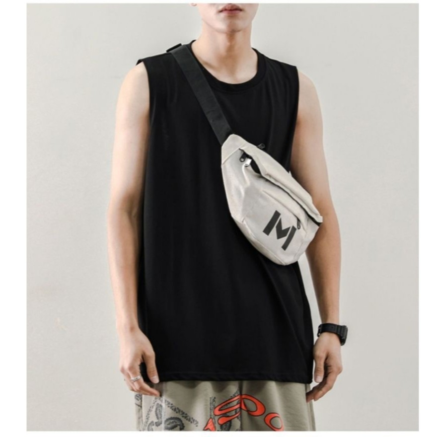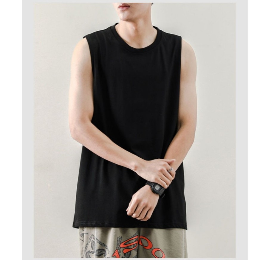 เสื้อกั๊กกีฬาผู้ชายทรงหลวม ผ้าใยสังเคราะห์ ใส่ออกกำลังกาย M-5XL แขนกุดสีพื้น