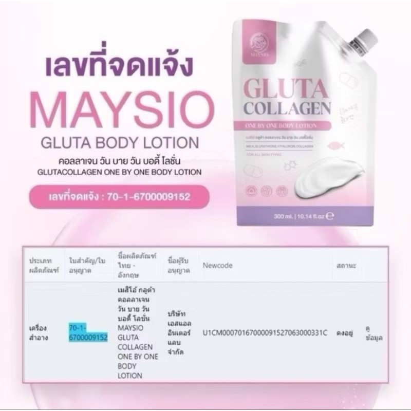 กลูต้า คอลลาเจน บอดี้โลชั่น บำรุงผิว Maysio Gluta Collagen 300ml.