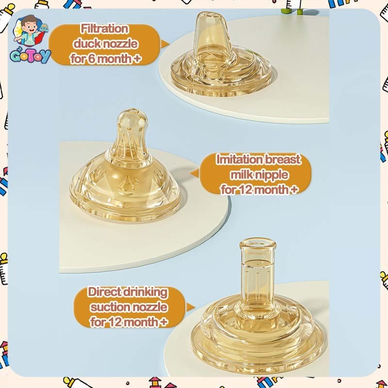 √ ขวดเดียวที่มีสามการใช้งานสามารถเปลี่ยนแปลงได้อย่างง่ายดายเพื่อให้ตรงตามขั้นตอนการพัฒนาที่แตกต่างกัน การเปลี่ยนจากจุกนมหลอกเป็นใบเป็ดเป็นจุกนมหลอกแบบตรงเป็นเรื่องง่ายช่วยให้ทารกเปลี่ยนจากนมเป็นน้ำได้อย่างง่ายดายทำให้คุณแม่หมดกังวลมากขึ้น
