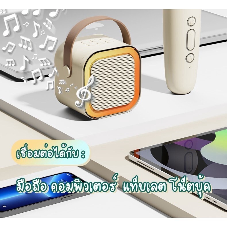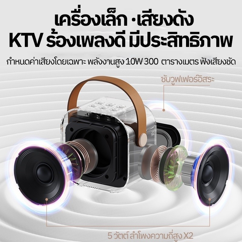 เครื่องคาราโอเกะมินิที่มีลักษณะเสน่ห์และการใช้งานง่ายทั้งสำหรับเด็กและผู้ใหญ่เพื่อเพลิดเพลิน ลำโพงบลูทูธมาพร้อมกับไดรเวอร์เสียงที่มีประสิทธิภาพสูงและเครื่องปรับสัญญาณดิจิทัลขั้นสูง ทำให้เสียงใสขึ้นและหลีกเลี่ยงเสียงคืบคลายที่น่ารำคาญ มีการอัปเกรดไมโครโฟน - รองรับการปรับเสียงมนุษย์ / เสียงสะท้อน / ระดับเสียงเพลงแยกกัน ใช้งานได้ในฐานะเครื่องคาราโอเกะและไมโครโฟนปกติ
