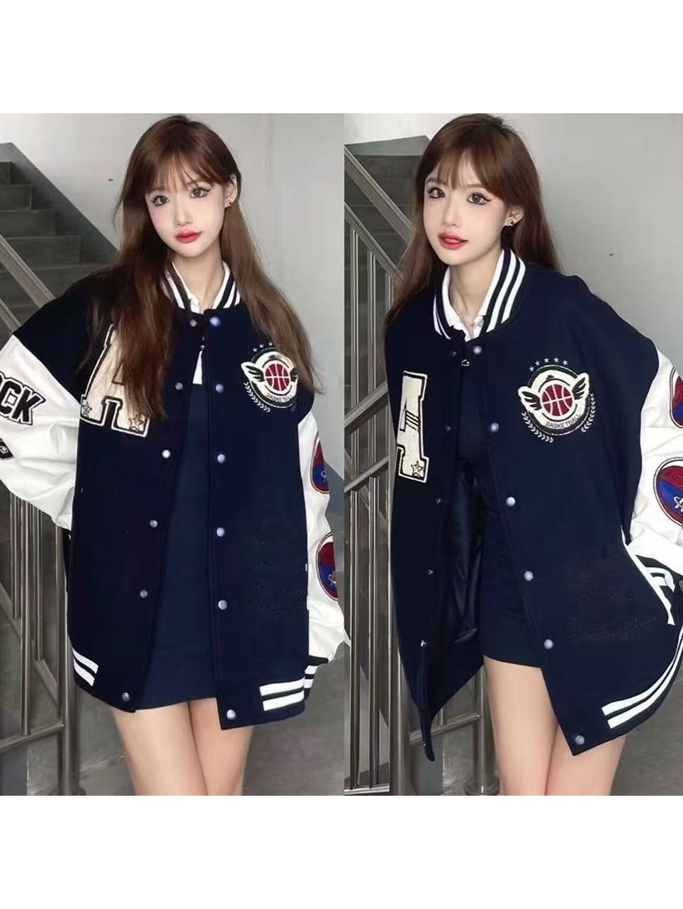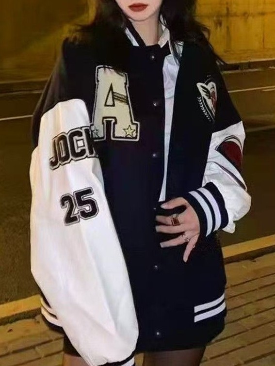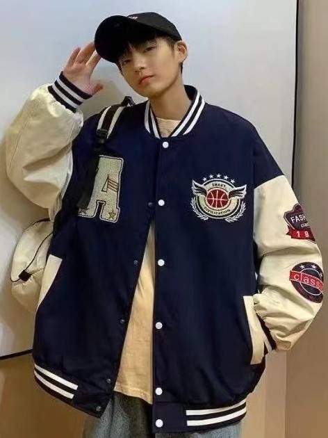 เสื้อแจ็คเก็ตปักลายผู้ชาย เสื้อแจ็คเก็ต Varsity สไตล์ลำลอง เสื้อแจ็คเก็ตบอมเบอร์ ดีไซน์ปักลาย