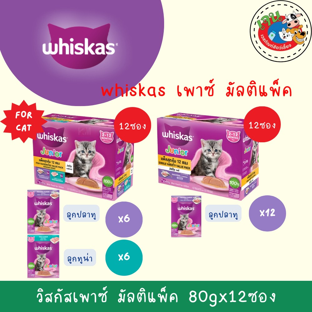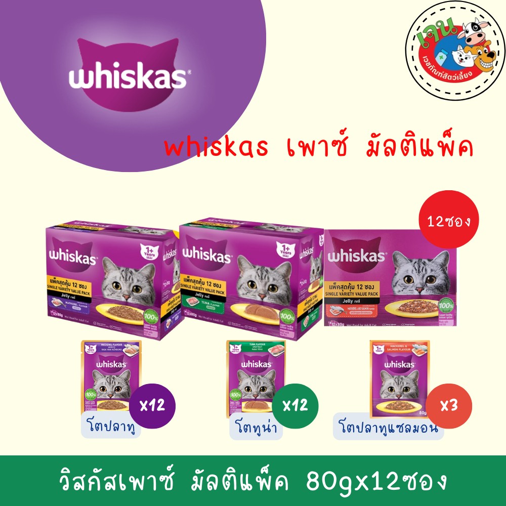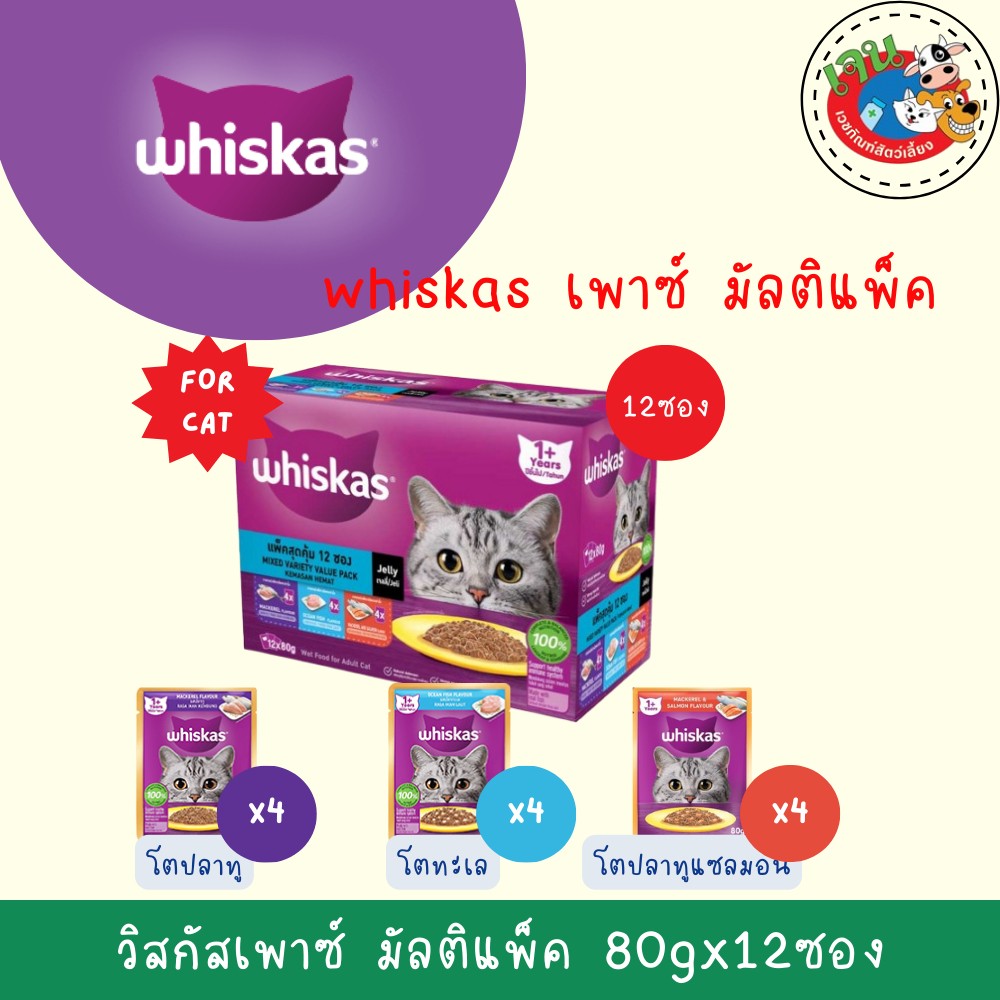 WHISKAS Multipack 80g. วิสกัส มัลติแพค เพาซ์ สำหรับแมวทุกสายพันธุ์ ขนาด 80 กรัม